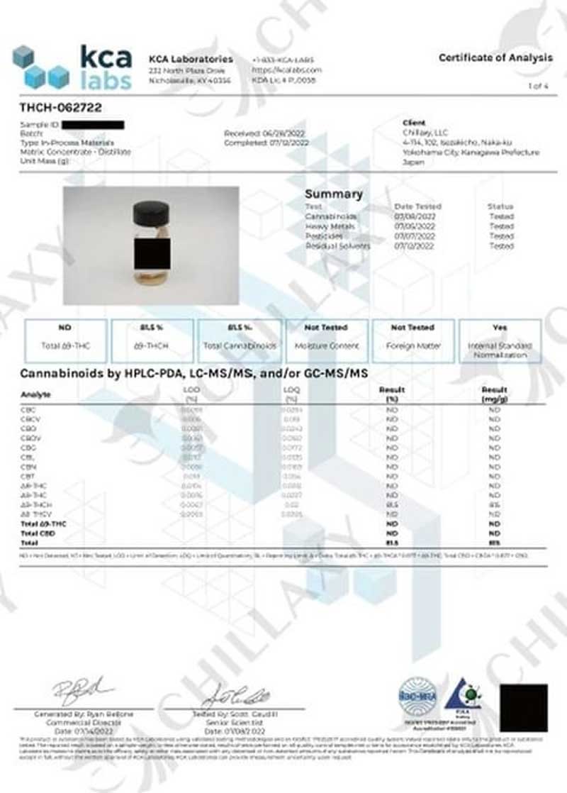 CBDブロードスペクトラム原料には、CBE/ CBG/ CBN/ CBL/ CBDVや検出項目以外のマイナーカンナビノイドも