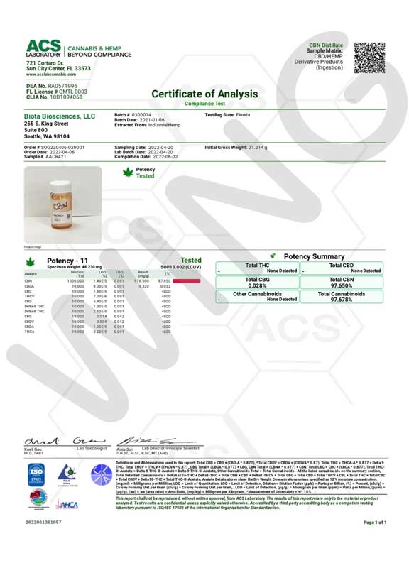 ◆CBN 成分分析書(COA)、CRD DARK 成分分析