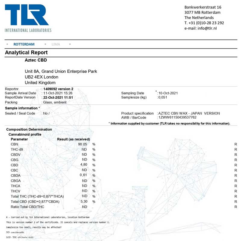 AZTEC CBD/ CBN WAX アステカ CBN ワックス 1g CBN濃度90% CBD濃度5%