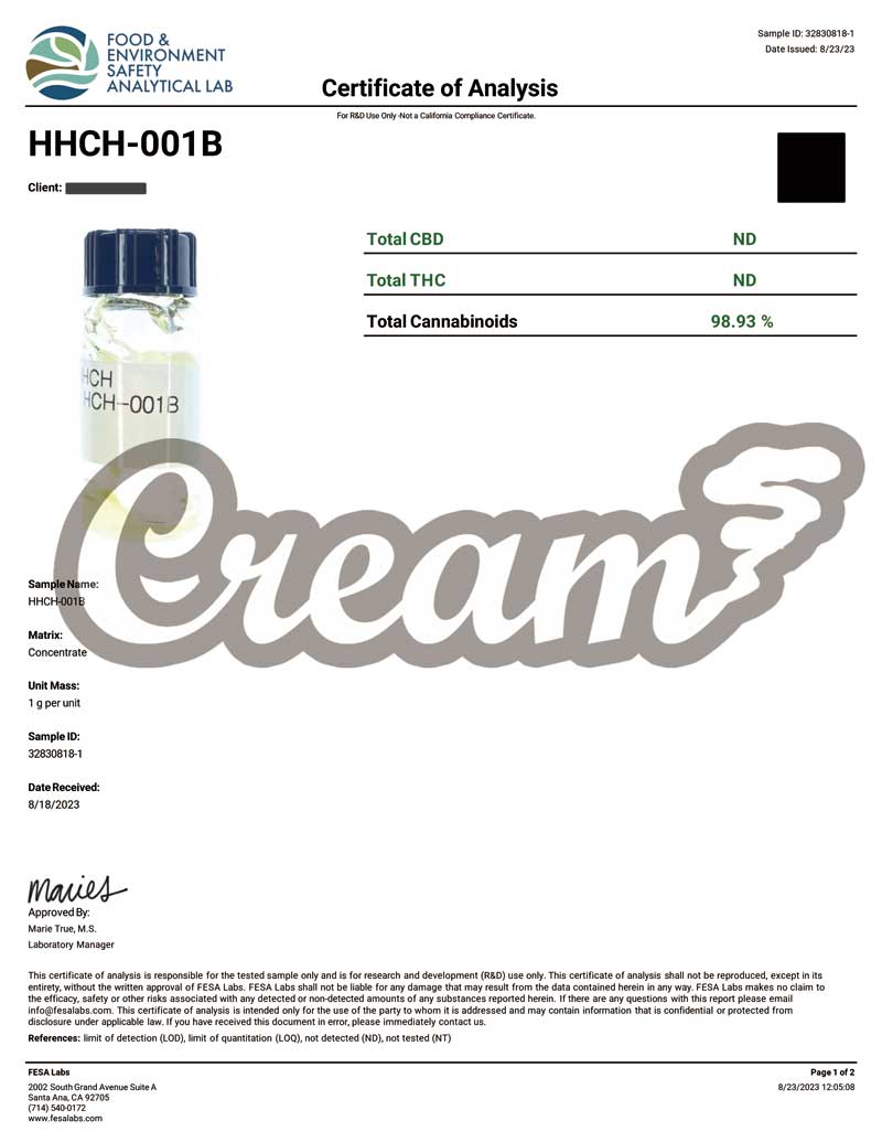 前作のCreams CBD/THUNDER LEMONでは THCH 15%でしたが、HHCH 20%となって復活!