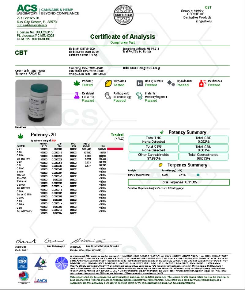 THCH、H4CBD、CBG、CBC、CBTを絶妙なバランスで1%単位で調合し国内最高クラスのテルペンをブレンド