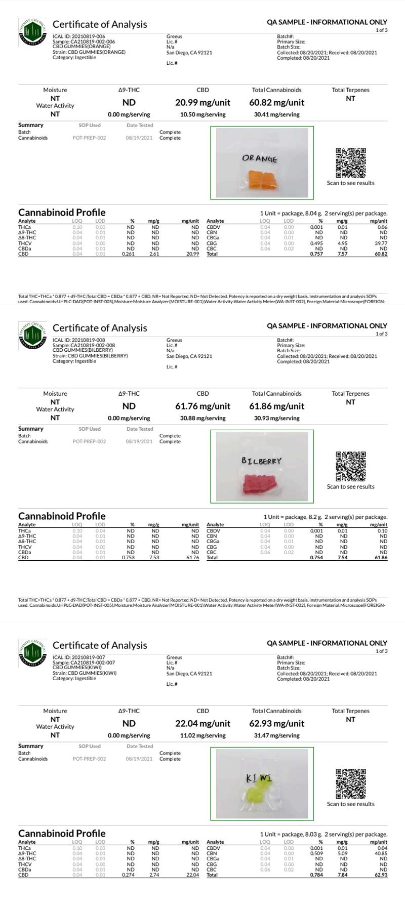 3種類の異なる仕様に仕上がったグミとなっています。勿論、早速、試しましたw CBD、CBG、CBNとカンナビノイドの特性を