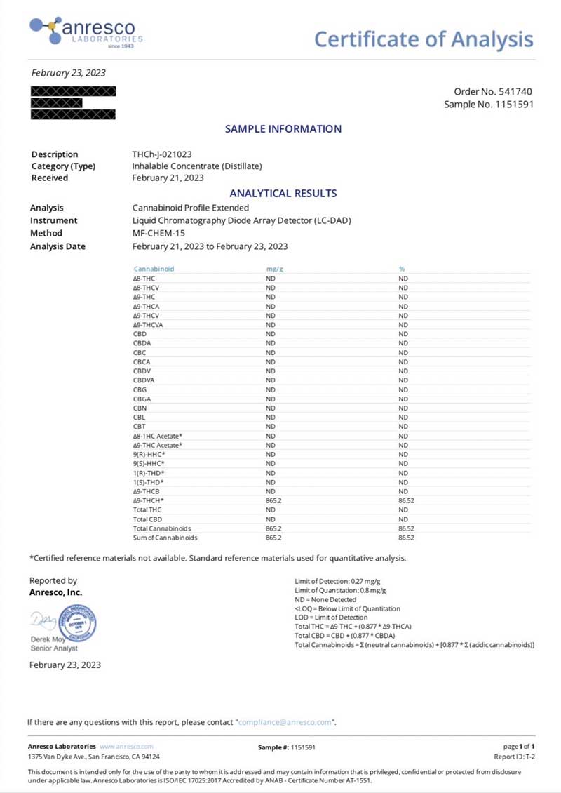◆原材料:THC-H Distillate 20%、H4CBD Distillate 25%