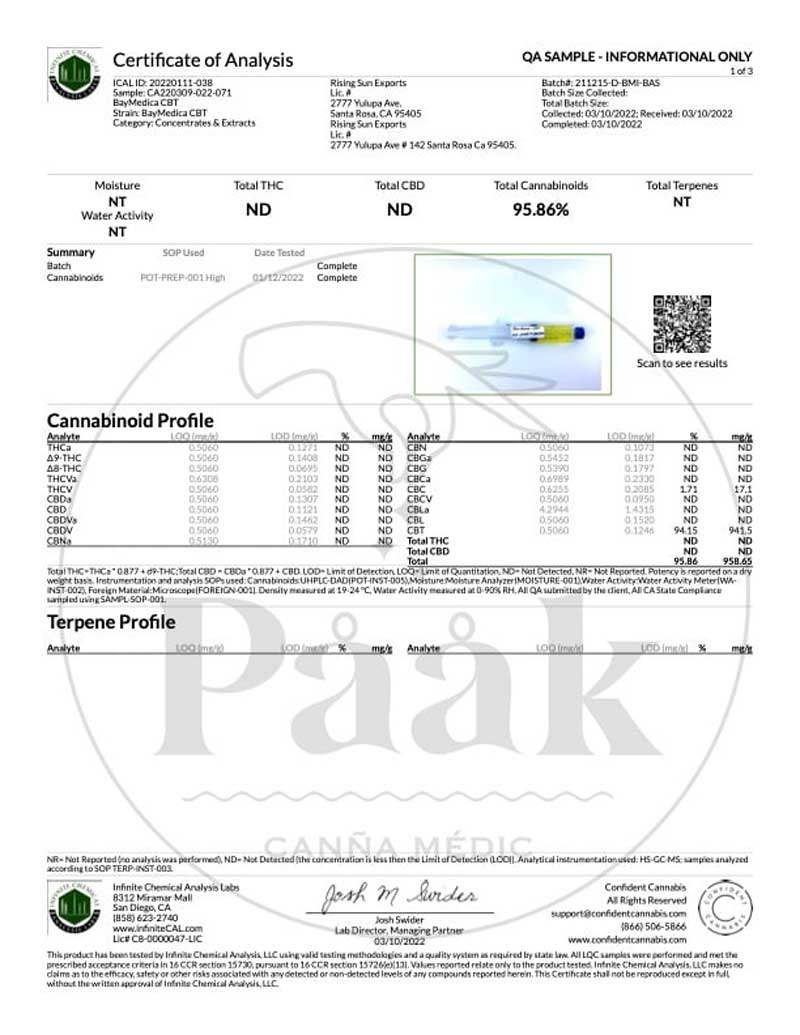 Paak Canna MedicのCBG優勢のトータルカンナビノイド92% 0.5mlの高濃度カートリッジで、