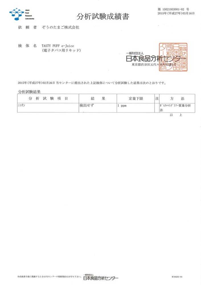 | Tasty Puff JFRL成分分析書(←click) | |||